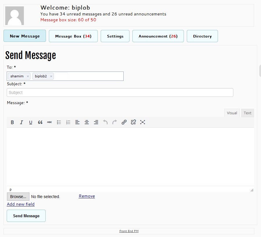 This extension now merged with Front End PM PRO. Buy Front End PM PRO to achieve this functionality.